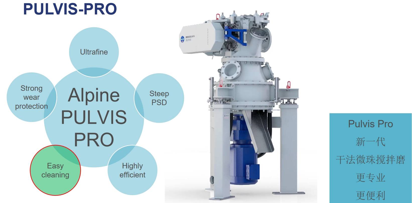 Pulvis是(shì)高(gāo)效節能(néng)的(de)超細幹法研磨機(jī)和(hé)集成分(fēn)級機(jī),研磨超細顆粒(亞微(wēi)米 d97 < 1μm)。